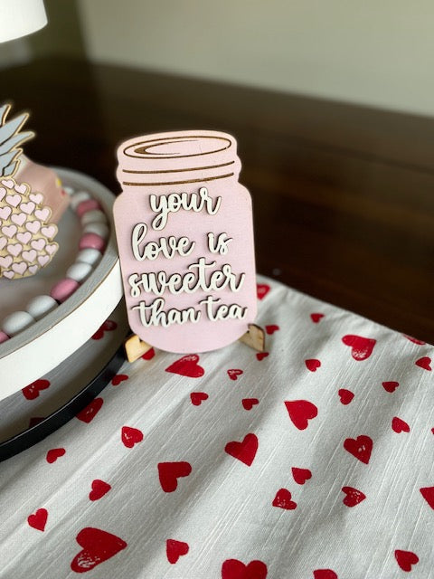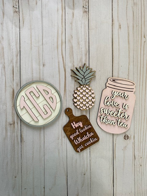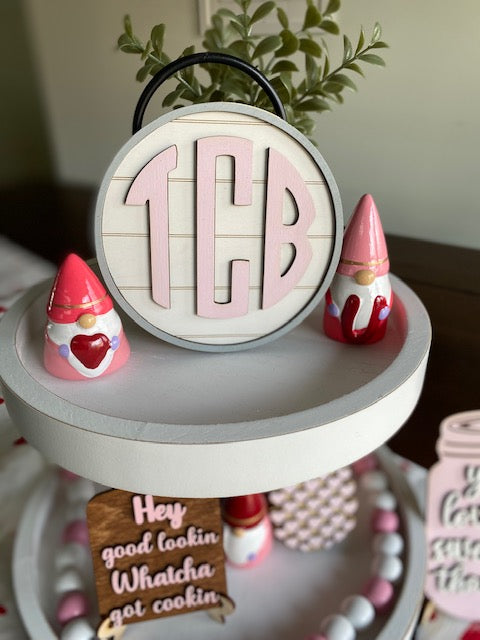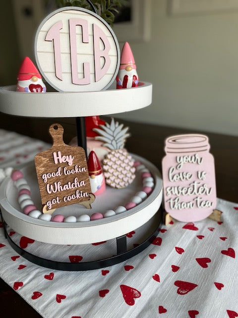 Give your Valentine's Day a southern twist with the "Southern Love Tier Tray". Each birch wood piece is made to order and painted in pink, grey, and white accents. All pieces can be displayed standing up, with an easel, or with command stripes.